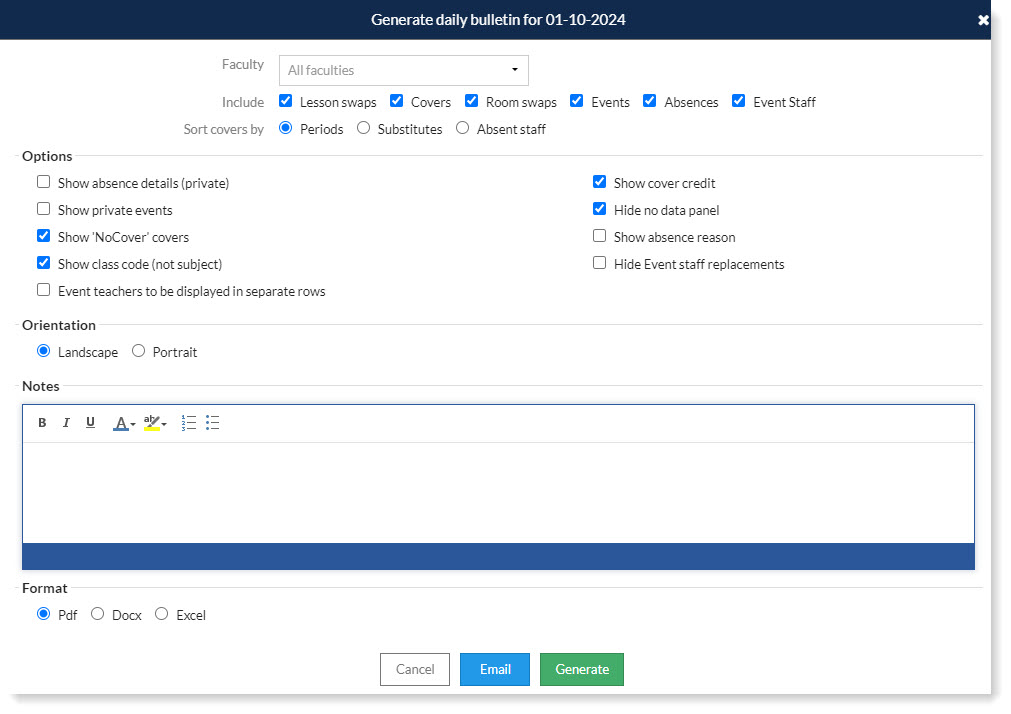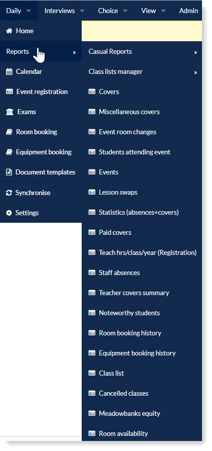 A comprehensive range of reports can be found under Daily > Reports menu including casual reports, absence details, Paid Covers report and a covers summary. All of the reports have been updated to include Irish terminology for cover types.