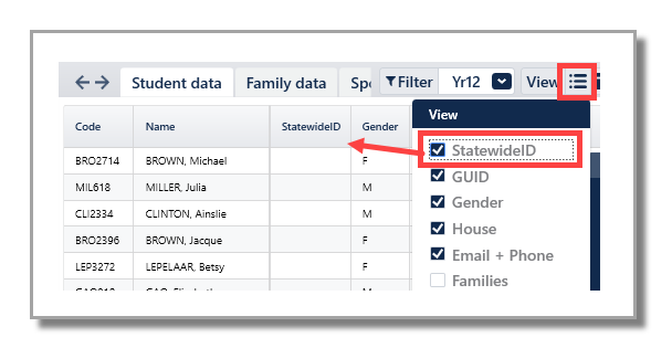 * Only students in E10 with a ‘Statewide ID’ entered in Students > Student data (F8) will be included in the export.