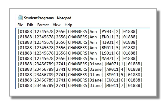 - Perform the VASS export from E10 to produce a file titled StudentPrograms.txt