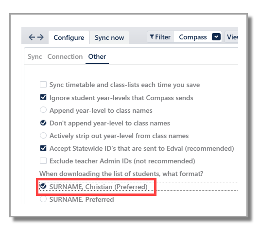 - Student names in E10 must match the student names in VASS or an error is given. Schools will have configured E10 to download student names from Compass in either the 'Christian' or 'Preferred' name format.