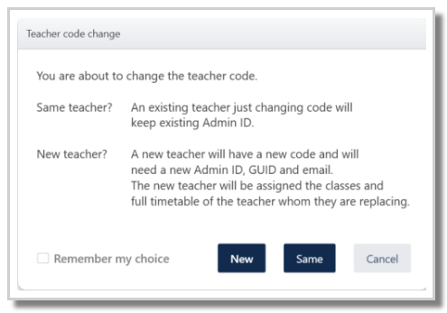 When a Licensed Administrator has the apostrophe in their code, this is happening due to changing the Code of a teacher and then selecting New on the Teacher Code change window and then changing the code back to the original code will then duplicate in Daily with one of the teacher having the original code with apostrophe.