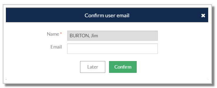 Once the email address is entered and 'Confirm' is selected, the window will close and the email address will be added to the user's record.