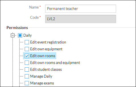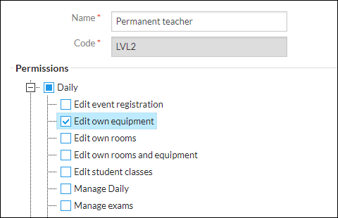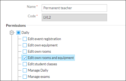 The ability for teachers to book rooms and equipment in Timetable Daily requires their assigned role to have certain permissions.
