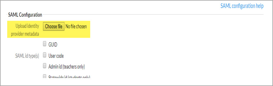 Upload SAML Service Provider metadata (Only other Identity provider)