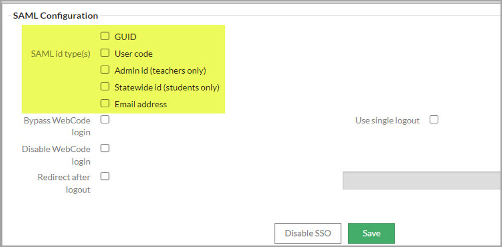 Schools that wish teachers not to use the Tes WebCode but instead only be able to access the single sign On SAML login page then they can tick this option as it will disable the Tes login page and because of this option, the buttons that schools usually issue WebCode will also be hidden.