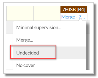 Merged classes will appear on the covers page. To unmerge the classes, select 'Undecided' from the options menu.