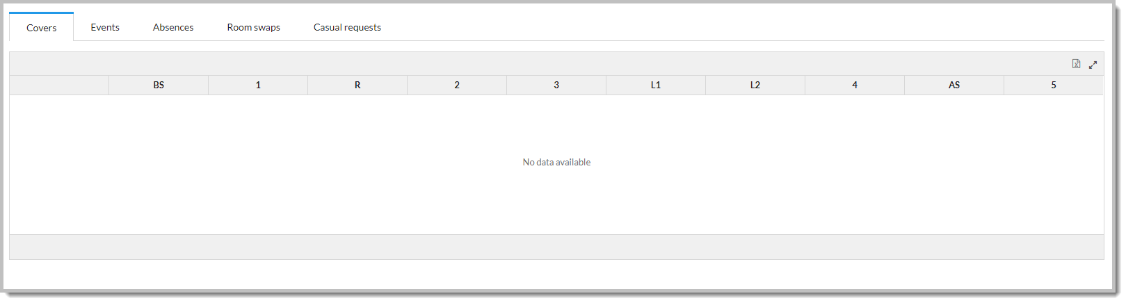 Covers – Classes or rooms that need a cover (Timetable Daily: Covers Tab)