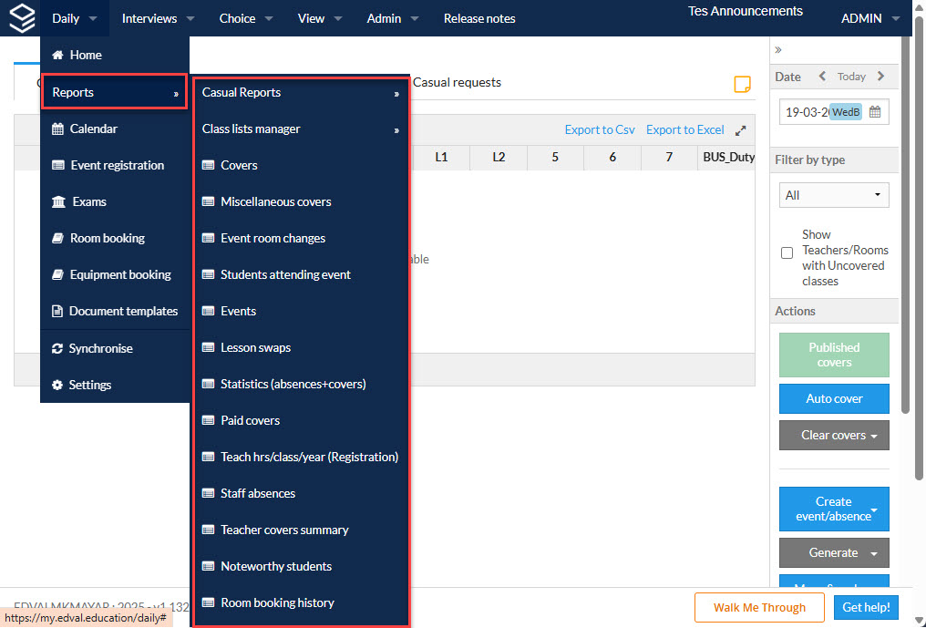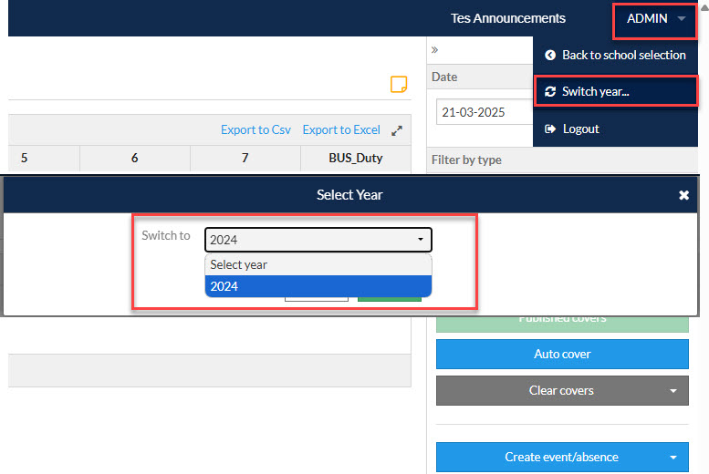 Every year after the 31st of March, the previous year's Timetable Daily data will be achieved which it will no longer be available to switch year and access the dataset. We advise our schools to download all available reports from previous year to avoid any distribution. To switch to the previous, click on top right profile section and select Switch year which then you will see the year drop down. The drop down for previous year will only be visible until 31st of March.