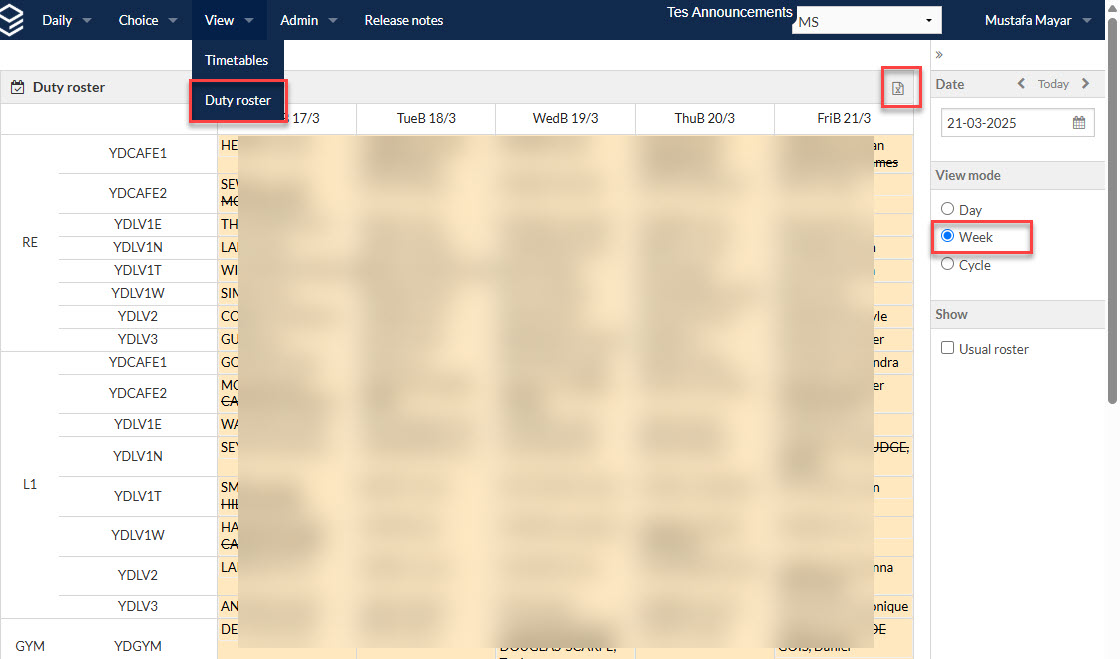 You can also export your daily Duty Roster under View>Duty Roster and click on Excel export icon.