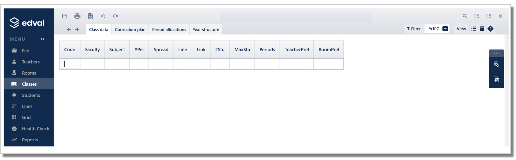 The 10G year level is special in nature, as it is the one to which all Home School classes in years 7 - 10 will be linked to, so construction of your Master grid can occur in an accurate fashion. Hence, it is vital that the creation of classes in this year level occurs. It can also be done by using a csv file import.