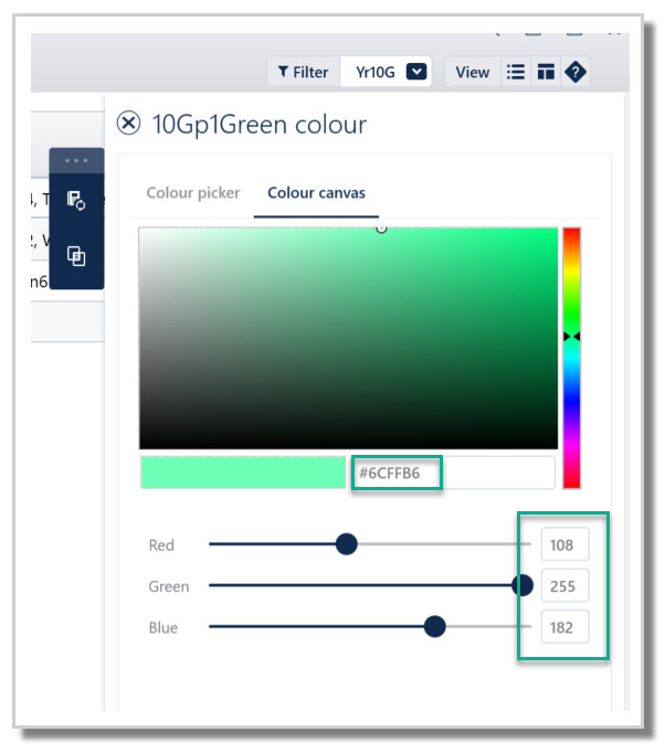 To set these colours, double click on the course code for 10Gp1Green. This will bring up the colour picker window.