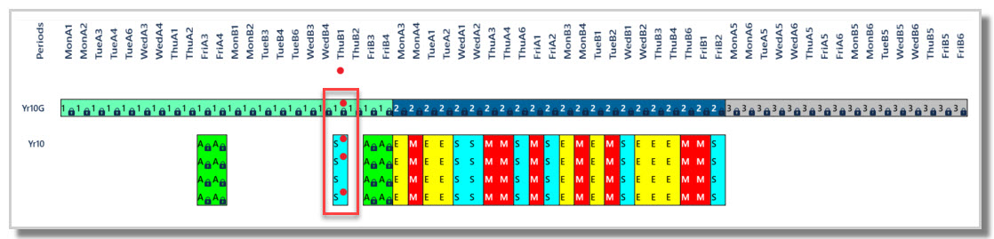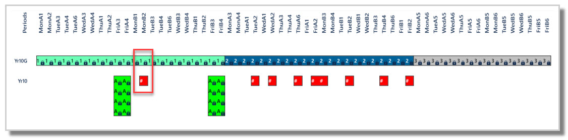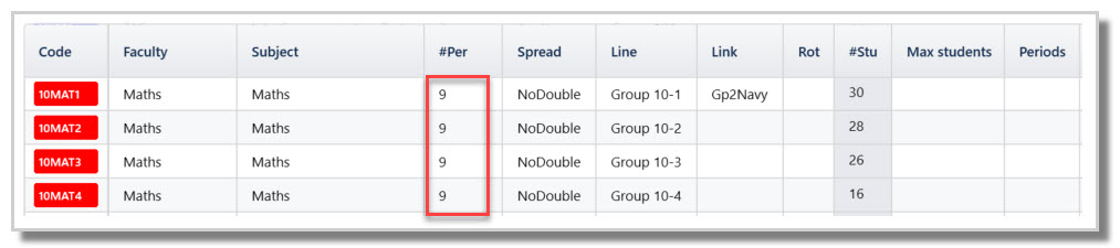 In the example below the Maths classes for year 10 are in groups and are allocated 9 periods and the Aurora student is in 10MAT1: