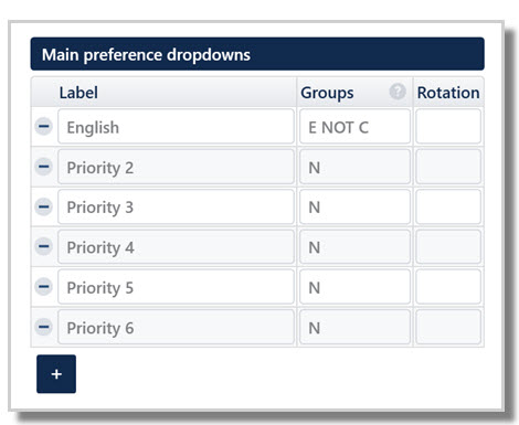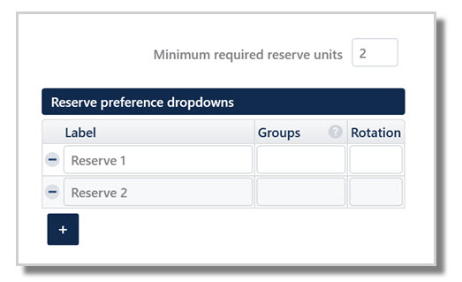 Reserve preferences works similarly to Main preference dropdowns; Labels may be edited, Groups and Rotation limitations may be entered.
