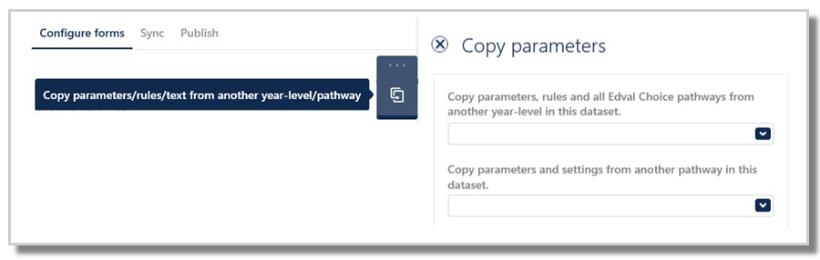 - Action bar: Copy parameters / rules / text from another year-level / pathway