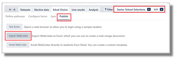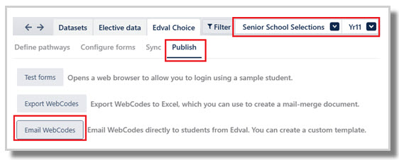 Students require an individual WebCode to log in to the webserver to submit their subject preferences. WebCodes are generated when the timetabler first sync's the Choice form to the webserver, and are stored within the etz file. These WebCodes will be communicated to students at the appropriate time, usually when the form is ready for student submission.