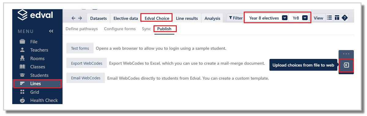 Occasionally, a user will need to clear all students' submissions from the webserver. This could be due to mistakes made in the Choice set up, or because they wish students to log into the same form and select afresh.