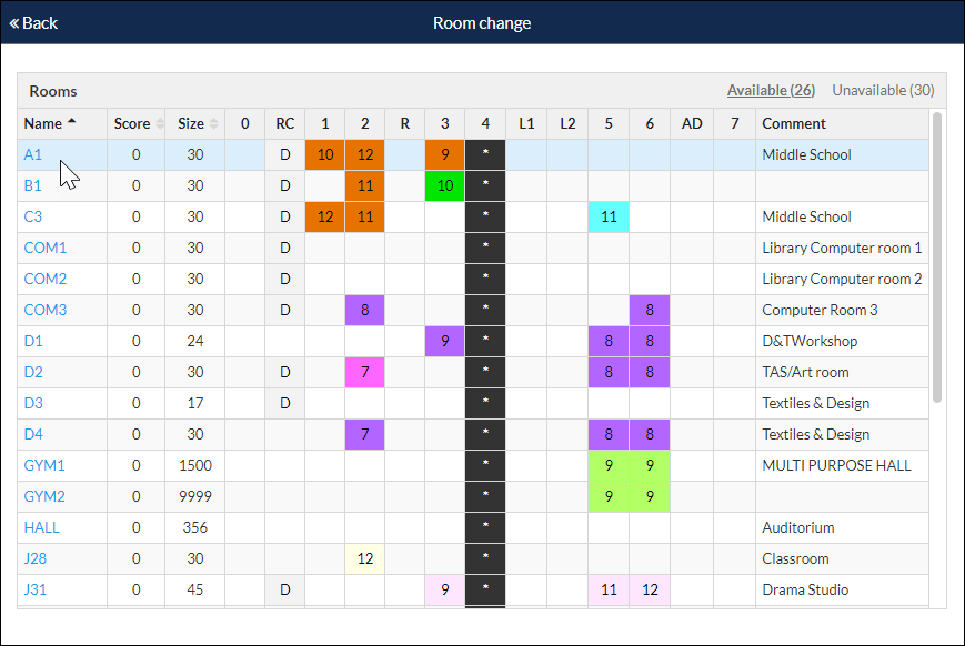 Multiple Room Changes made by the Daily Organiser