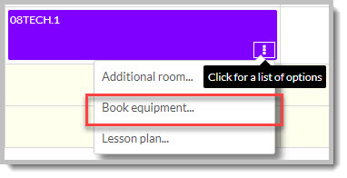 There are two ways to create an equipment booking in Timetable Daily: via Daily > Equipment booking or via a teacher timetable.