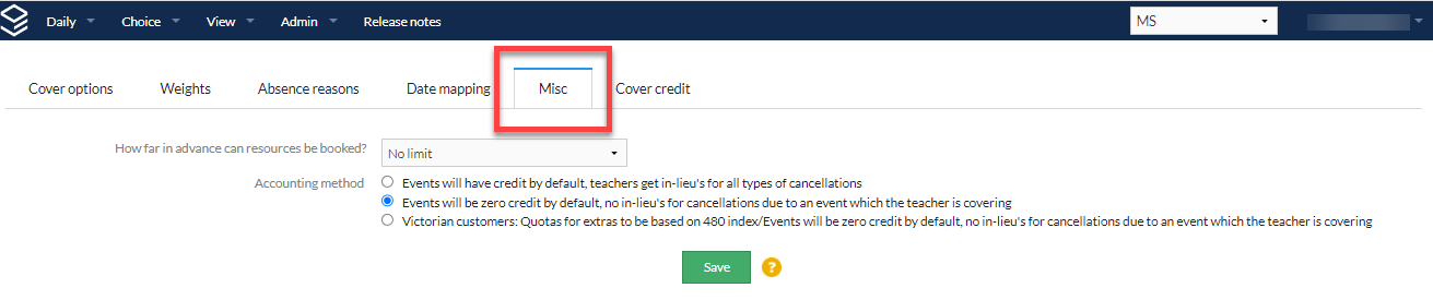 - If an available teacher is added to an event as an additional teacher via the covers panel and that teacher has an underload value less than the total credit of the event, they will be credited with extras for the entire event.