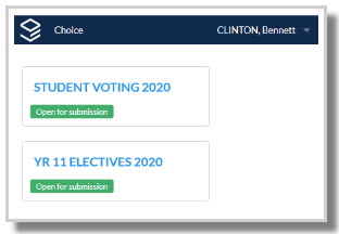Once signed in, students will see all of the open or closed Choice forms relevant to them.