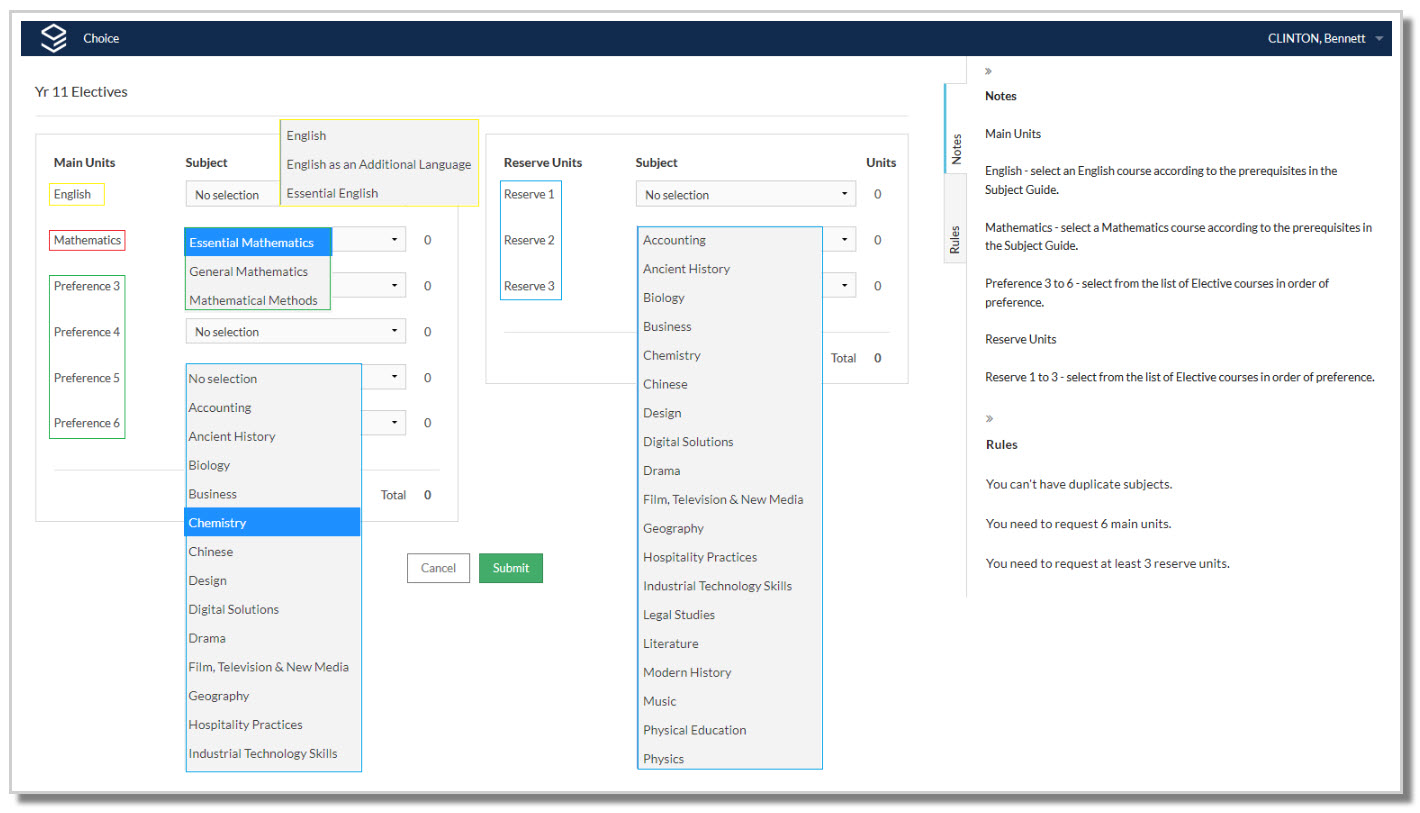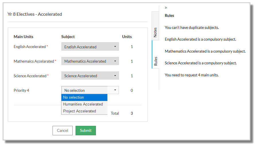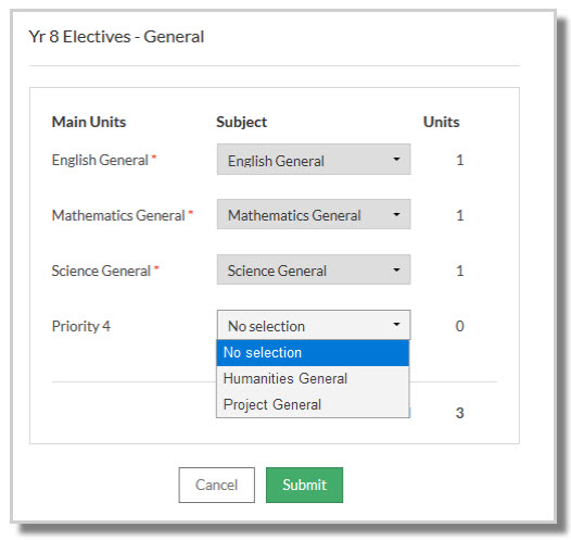 Each subject has been assigned a unit value, and students will not be able to submit their subject preferences unless they meet requirements that have been set by the school.