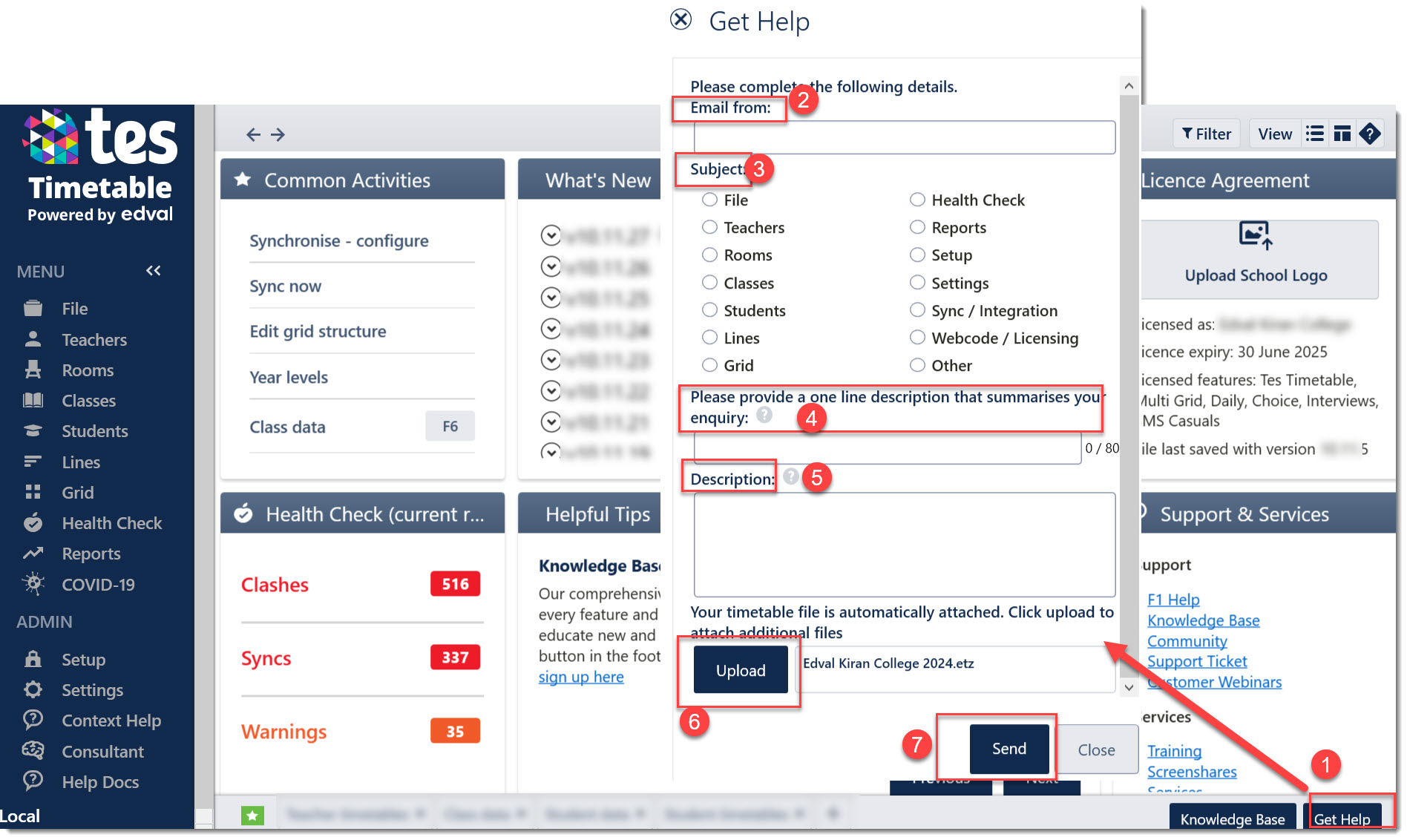 We do not recommend sending syncing related queries through Tes E9 timetable application as the current get help functionality within the product does not allow to attach additional information such as logs and screenshots which is crucial in syncing investigation. Please follow the approach on submitting ticket through support portal mentioned below.