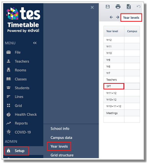 Navigate to ADMIN > Setup > Year levels. In the Year Level field, add a new year level, e.g. SPT, which will be the home year level where the sport classes will be created.