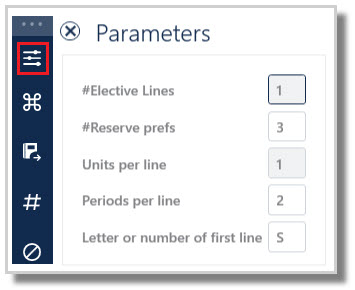 Click on the Parameters icon on the right hand side of the screen for the parameters table to slide out. Enter the parameters.