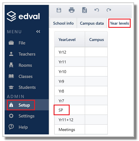- In the .etz file, navigate to ADMIN > Setup > Year levels.
