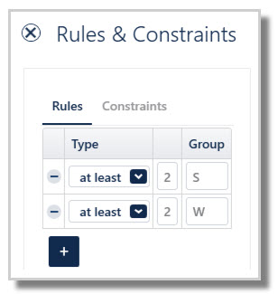 - In the Lines > Elective data > Courses screen, click on the Rules & Constraints icon in the action bar. Rules are not set up in the SP year level selector, since this year level has no link to students.