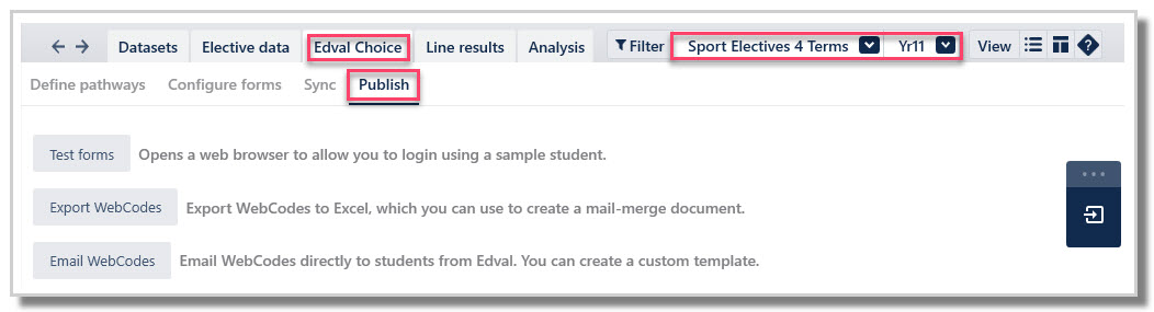 - Once the form has been configured and synced, thoroughly test the Choice form online before issuing / communicating any WebCodes to students.