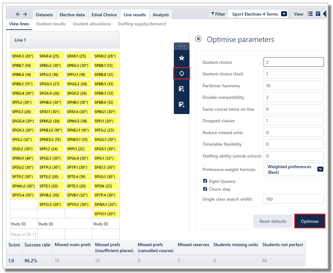 - To optimise this line results solution further, select the Optimise solution icon from the action bar.