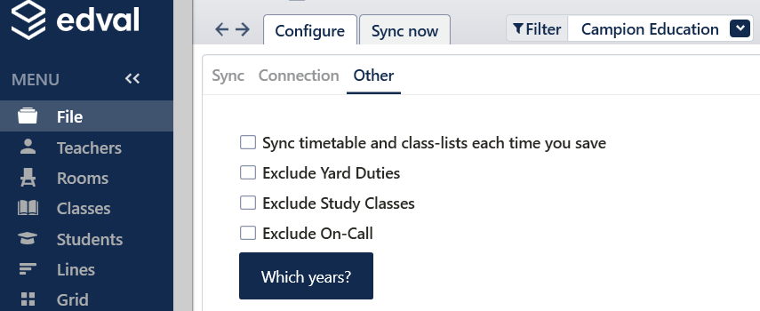 Sync timetable & class lists every time you save: This will send enrolment data to Campion upon every save.