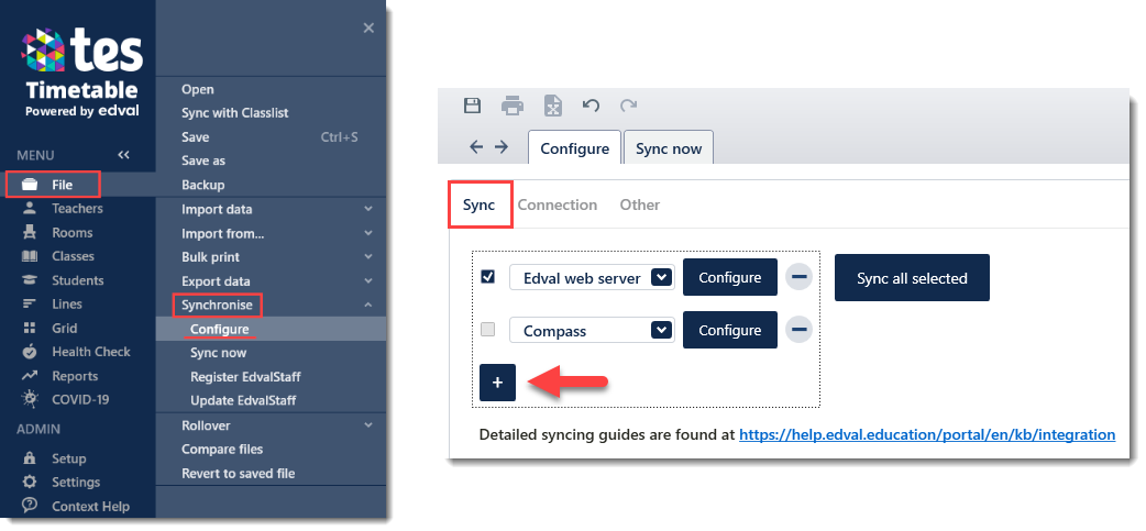 Open the relevant timetable file, and go to File > Synchronise > Configure > Sync tab