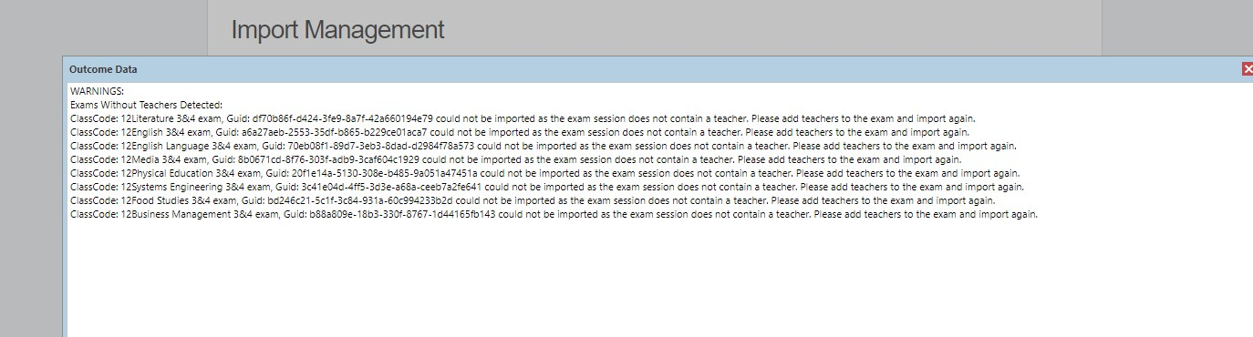 19. Exams appearing in Compass but with no teachers even though in Daily teachers are covering that class? A Warning message shows up in compass saying 'Exams without Teachers Detected'