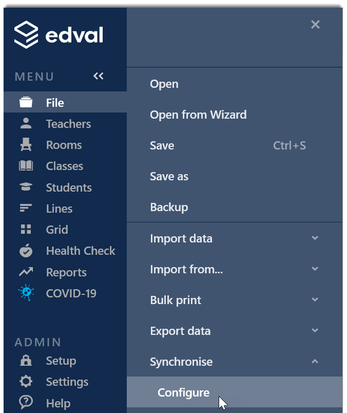 Edval --> CESIS Server : Publish Classes, Class lists, Timetable, Bell times)