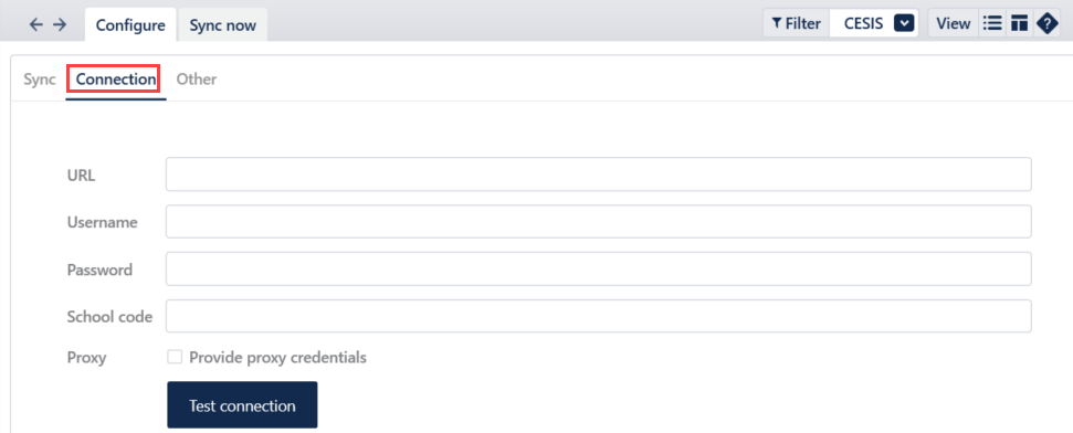 On the “Connection” tab add all the required fields which are provided by your CESIS server provide