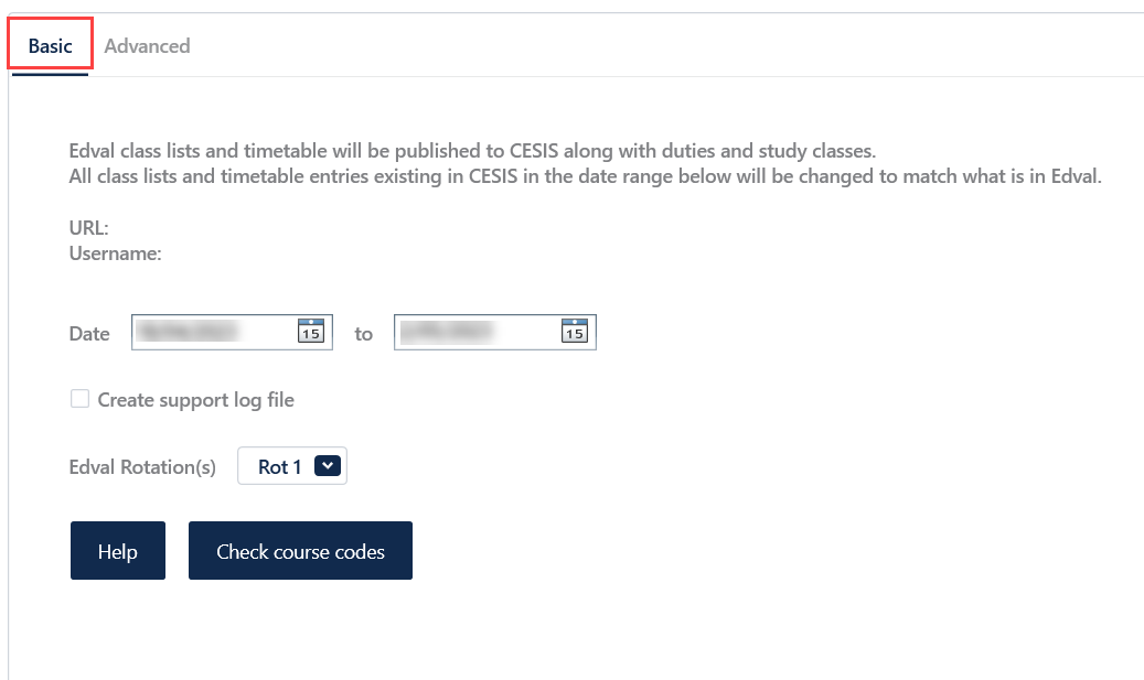 How far to sync the timetable to CESIS by adjusting/selecting the date. - Create support log file