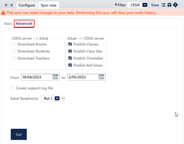All class lists and timetable entries existing in CESIS in the date range below will be changed to match what is in Edval.