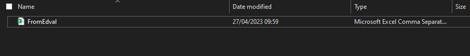 - A FromEdval.csv file is created in the folder that was specified earlier.