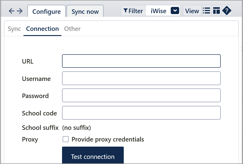 - Click the 'Test Connection' button to check that the details are correct and the link between Tes and iWise is working correctly.