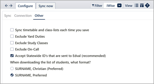 Sync timetable & class lists every time you save | This will send only the timetable and class membership data to iWise each time you save the file |