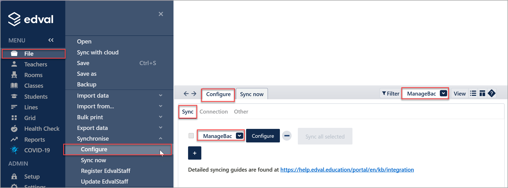 Multiple systems can be set up to sync. It is common to have both the Edval webserver, the schools learning management system configured, along with any other systems the school wishes to regularly sync to.