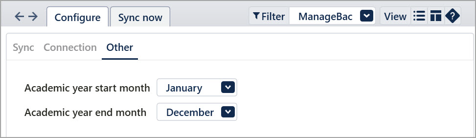 - Ensure ‘ManageBac’ is selected from the dropdown in the top-right corner.