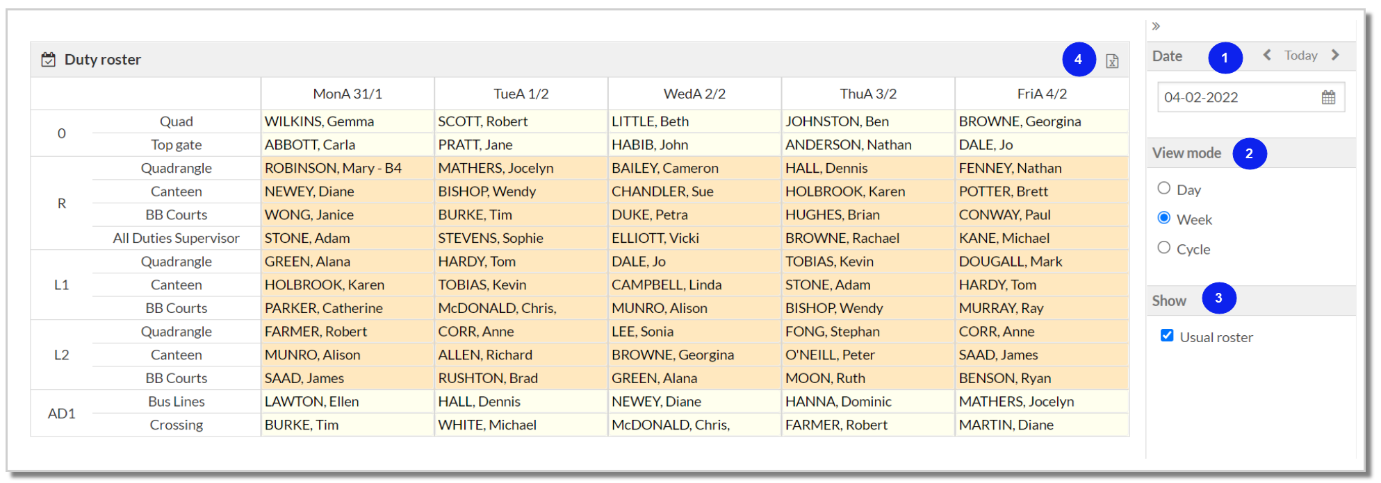 - The roster can be exported to Excel. It will export the roster with daily changes when 'Usual roster' is not selected. It will export the usual roster when this option is selected.