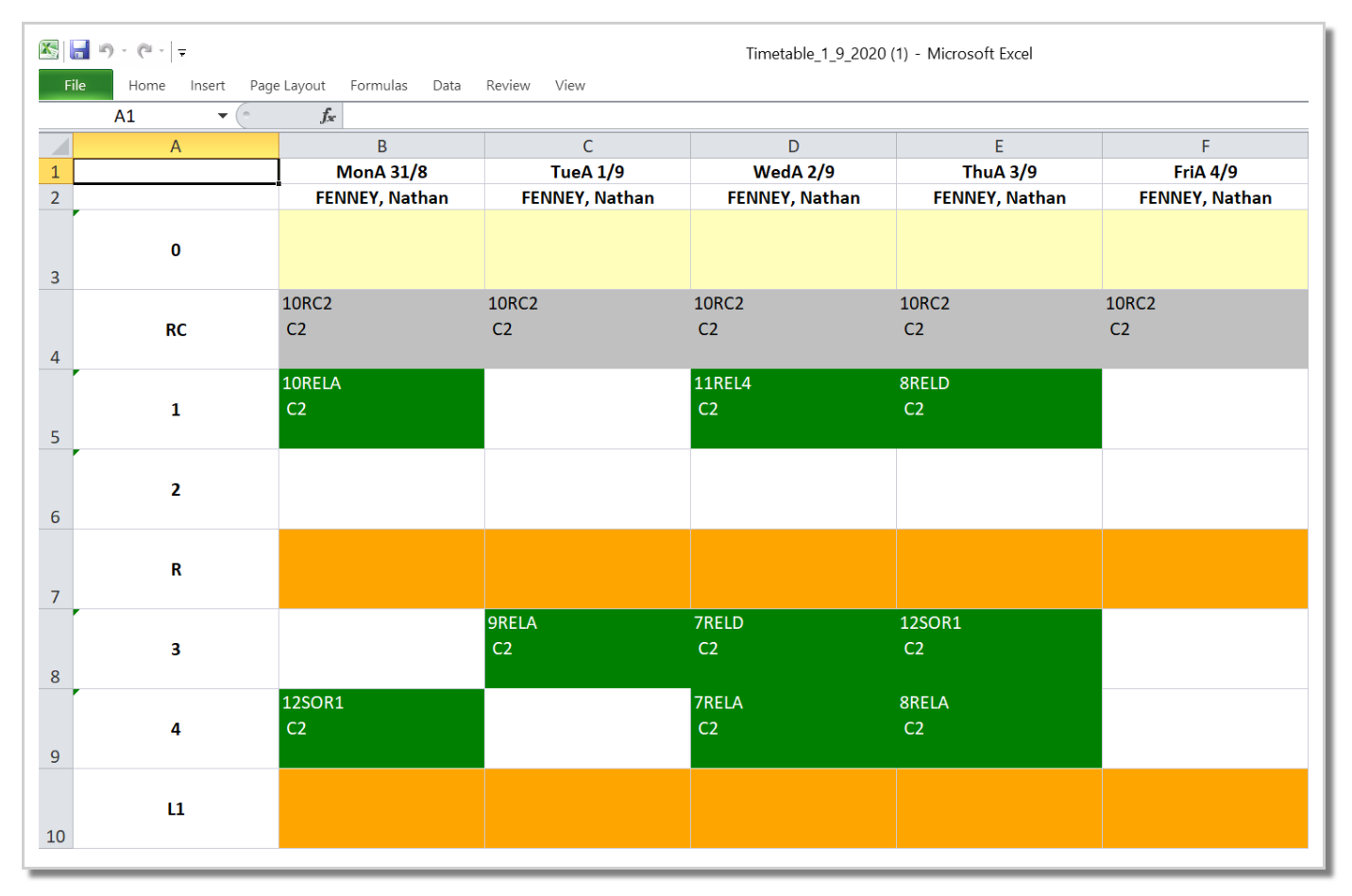 Using this option will export the displayed timetable to Excel. Before exporting, make sure that the options you have selecting for viewing reflect what is required for exporting.
