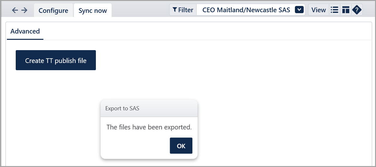 Once the sync settings have been saved, the data can be exported. The export will be performed whenever the timetable data changes and requiring another sync to CEO Maintland/NewCastle SAS.