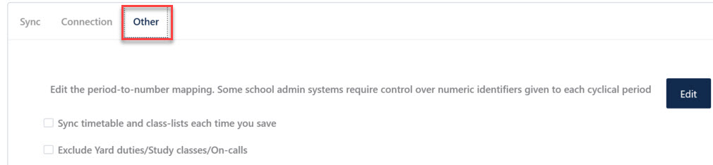 8. Go to the ‘Other sub-tab and change any options to your preference. You might find the ‘Sync timetable and class-lists each time you save’ option to be helpful. This will send only the timetable and class membership data to Daymap each time you save the file.