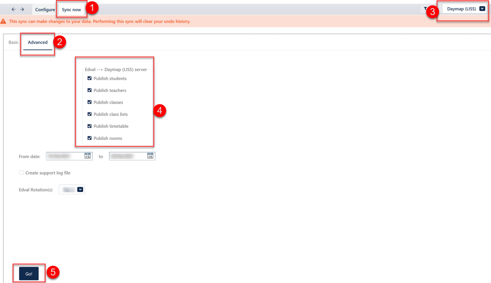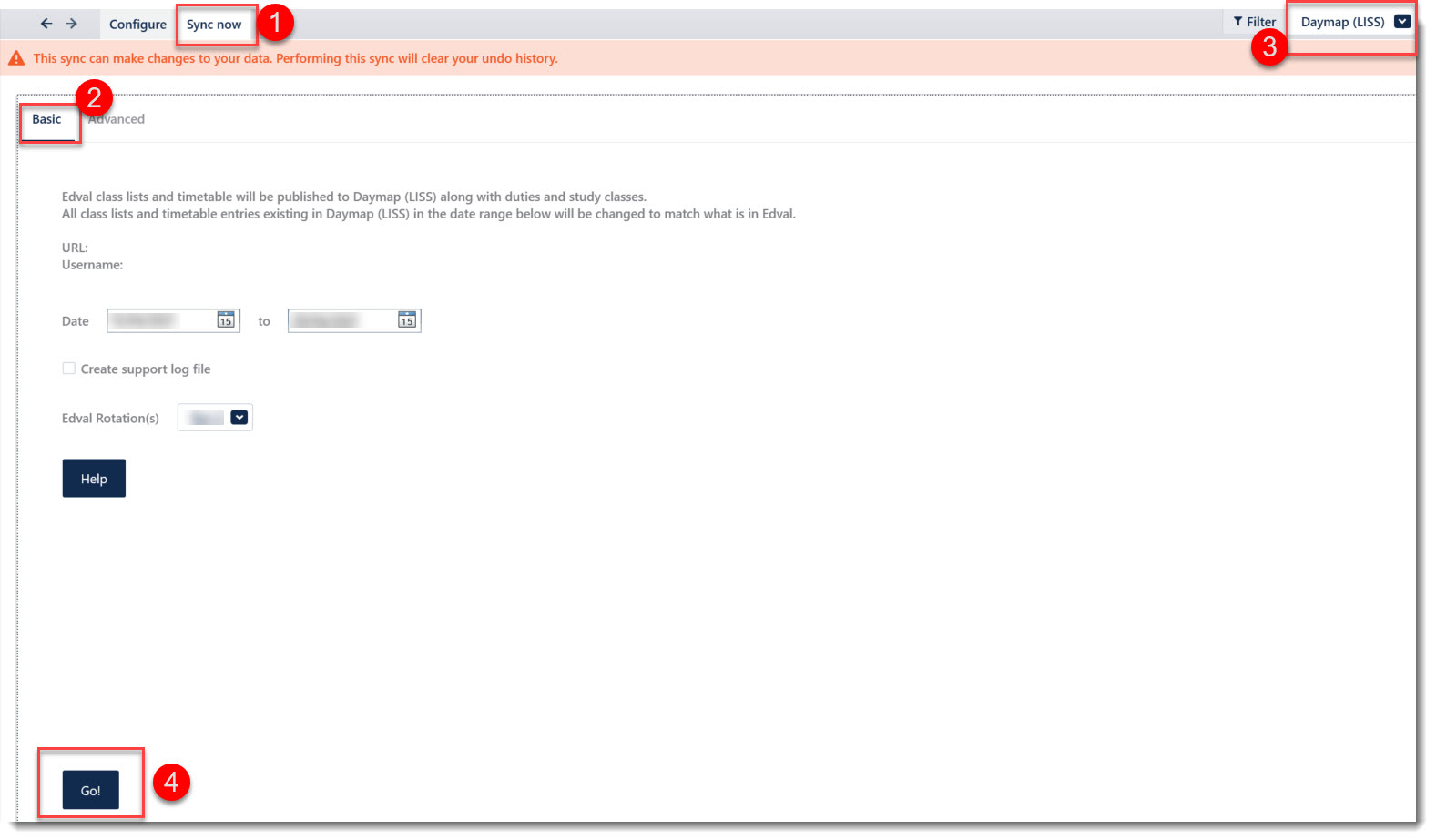 Input the date range you wish to update the Daymap data in and select the rotation you wish to sync