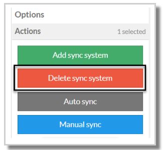 To delete the Daymap synchronisation pathway, select the Daymap sync config and use the 'Delete sync system' action which will become active when a sync config is selected.